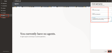 Login to OIC 3 console >> Design >> Agents >> Create an agent group
