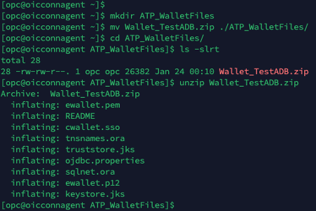 WALLET_LOCATION = (SOURCE = (METHOD = file) (METHOD_DATA = (DIRECTORY="/home/opc/ATP_WalletFiles")))