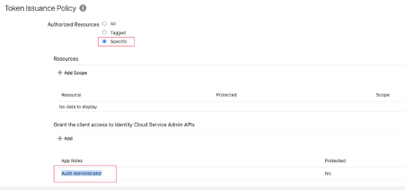 A confidential IDCS application with “Client Confidential” & “Refresh token” grant type and a valid scope which allows read only permission for IDCS Users REST API. I discussed this scenario with my IDCS Administrator, and he created a IDCS Confidential Application with “Client Confidential” & “Refresh token” grant type and “Audit Administrator” role as per below snap –