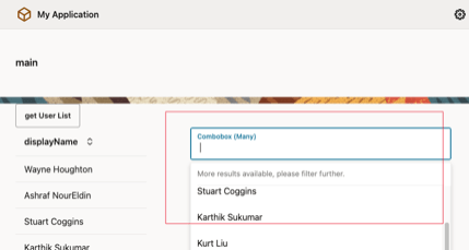 As you can see in above snapshot, combobox been populated with IDCS users list, and no matter which user going to access this VBCS application, VBCS will always use this Fixed connection IDCS confidential application to make a call to IDCS and populate this comboxbox with result.