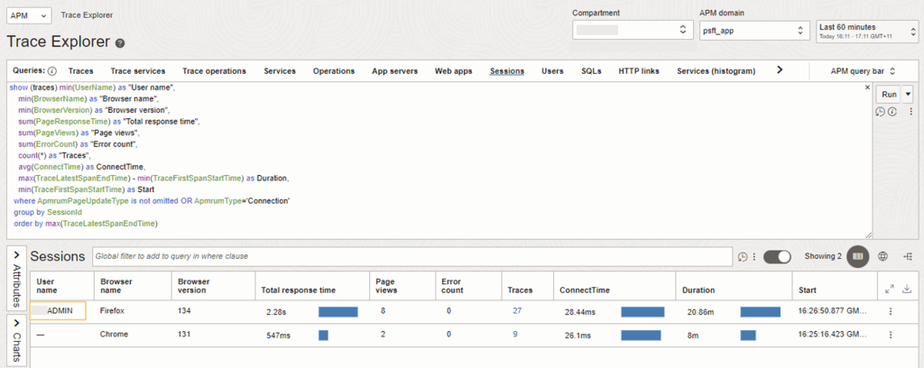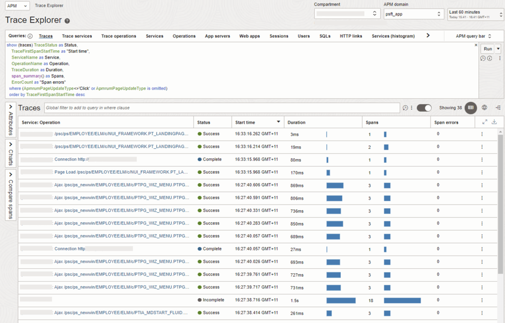 For many customers, the PeopleSoft (PSFT) Application is critical to business operations. With OCI Application Performance Monitoring (APM) service, administrators can: