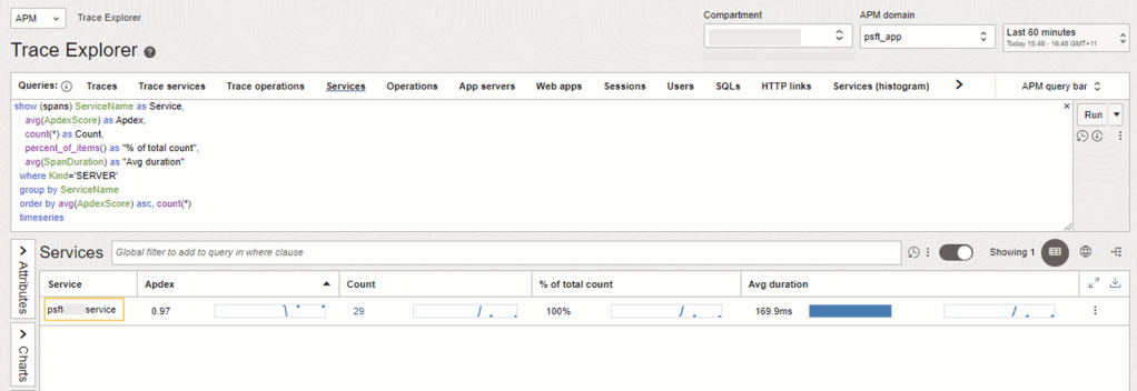 When the APM Java Agent was provisioned earlier, the APM_SERVICE_NAME eg. psft-xxx-service that was set will appear here.