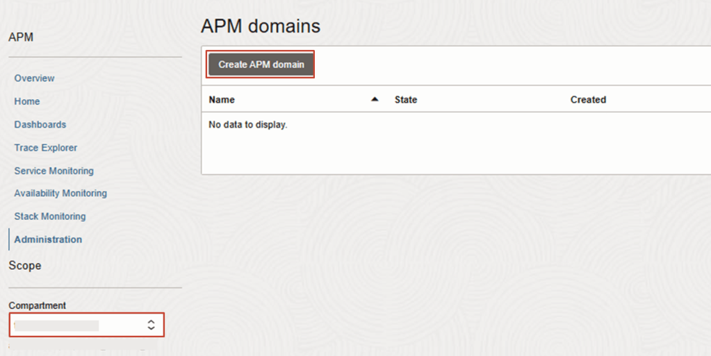 Click on Create APM Domain