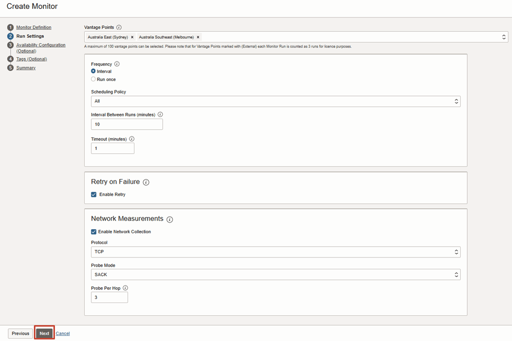 If your endpoint URL is only accessible within a private network, then you must first set up the Dedicated Vantage Points. Do this before performing the steps below.