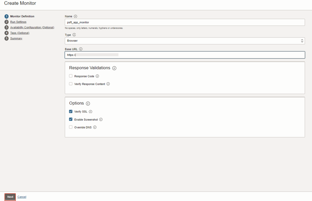 Any endpoint URL can be configured in Availability Monitoring (synthetic monitoring). In this example, we will create the Monitor configuration for the PeopleSoft home page.