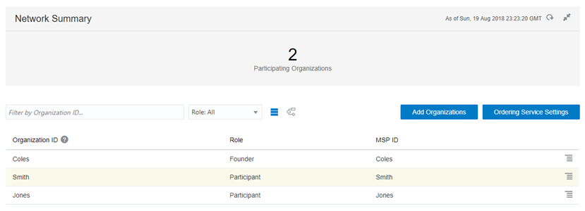 Here’s a screenshot of the existing Orderer network configuration with the newly imported participant organisations.