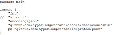 This is the start of the source file. The main imports are the Fabric Shim and Peer that relate to the Fabric Go SDK. The other imports are more about data manipulation.