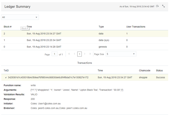 Having a look at the Blockchain Network console and under the Channels tab, I can look at the state of the ledger and other statistics.