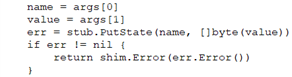 This is an example of a PutState call. Notice that data comes back as a byte array.
