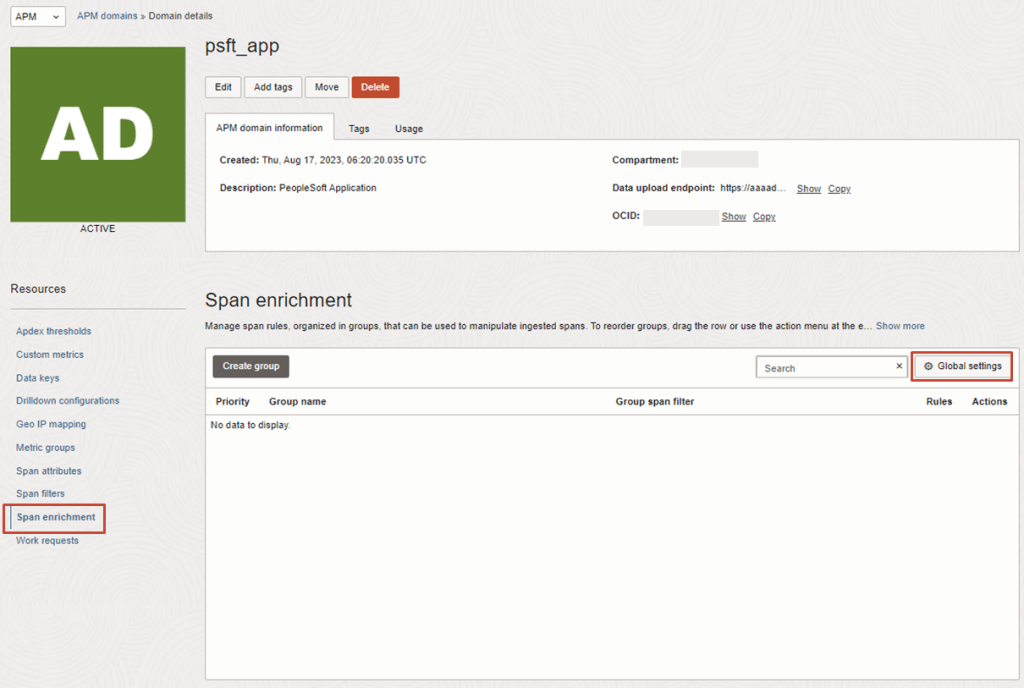 The OCI Application Performance Monitoring (APM) service enables administrators to monitor and observe the PeopleSoft web applications.