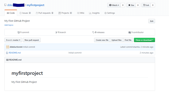Soon afterwards you will see that a Git repository will be created under your login (eg jsmith001/myfirstproject).