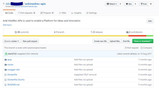 Ok so far so good, you should now have a GitHub account, and have forked the ankimedrec-apis project into your GitHub account. You can see that there are a number of files in the project.