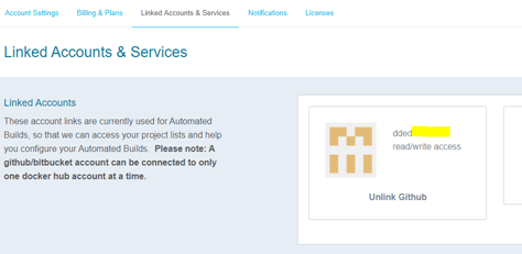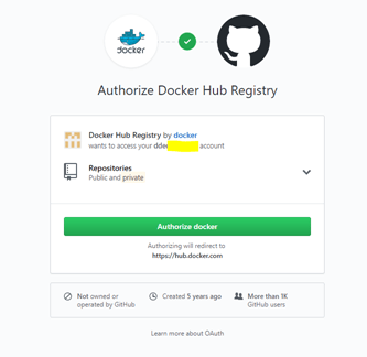 You should see the above image highlighting that your Docker Hub account is now linked to your GitHub account.