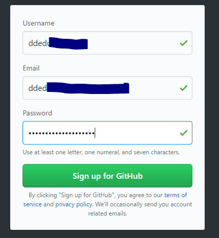 Simply fill in the required mandatory details and press Sign Up for GitHub.