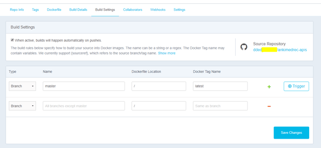 By default, when new code is merged into your source repository, it triggers a build of your DockerHub image.