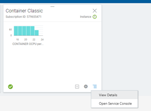 Click Open Service Console, and then click the hamburger icon on the right of the Oracle Container Cloud Service Instance and choose Container Console.