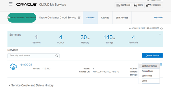 With your Docker image built, login to your Oracle Cloud Account and access the MyServices Dashboard.