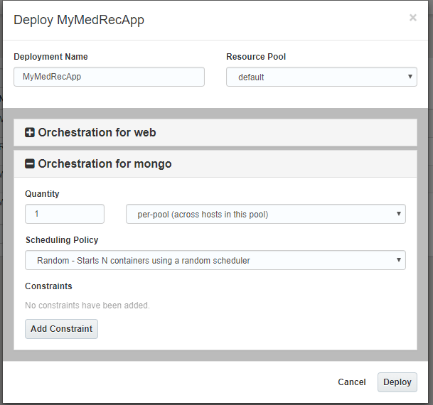 Accept the default values of 1 per-pool (across hosts in this pool) for both the (Node.js) Web Application and (mongoDB) Database Tiers.