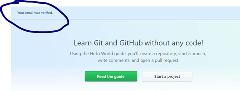 In your browser session for GitHub account creation, you should see that “Your email was verified”.